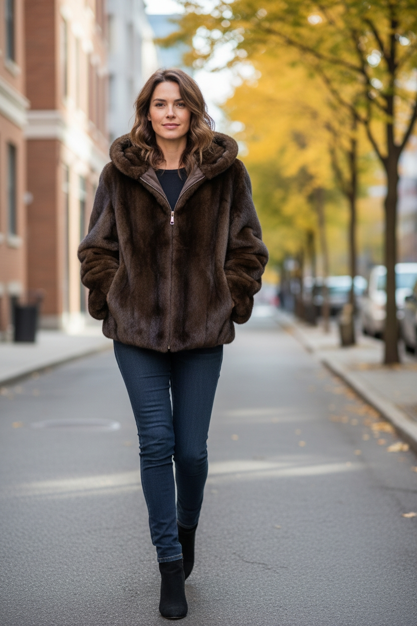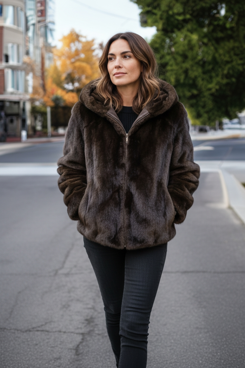 Ecofur Paris è un'innovativa giacca in ecopelliccia dotata di cappuccio. Realizzata con materiali sostenibili, offre un'alternativa etica alla pelliccia tradizionale, riducendo l'impatto ambientale. La sua struttura calda e protettiva garantisce comfort termico, rendendola ideale per climi freschi.