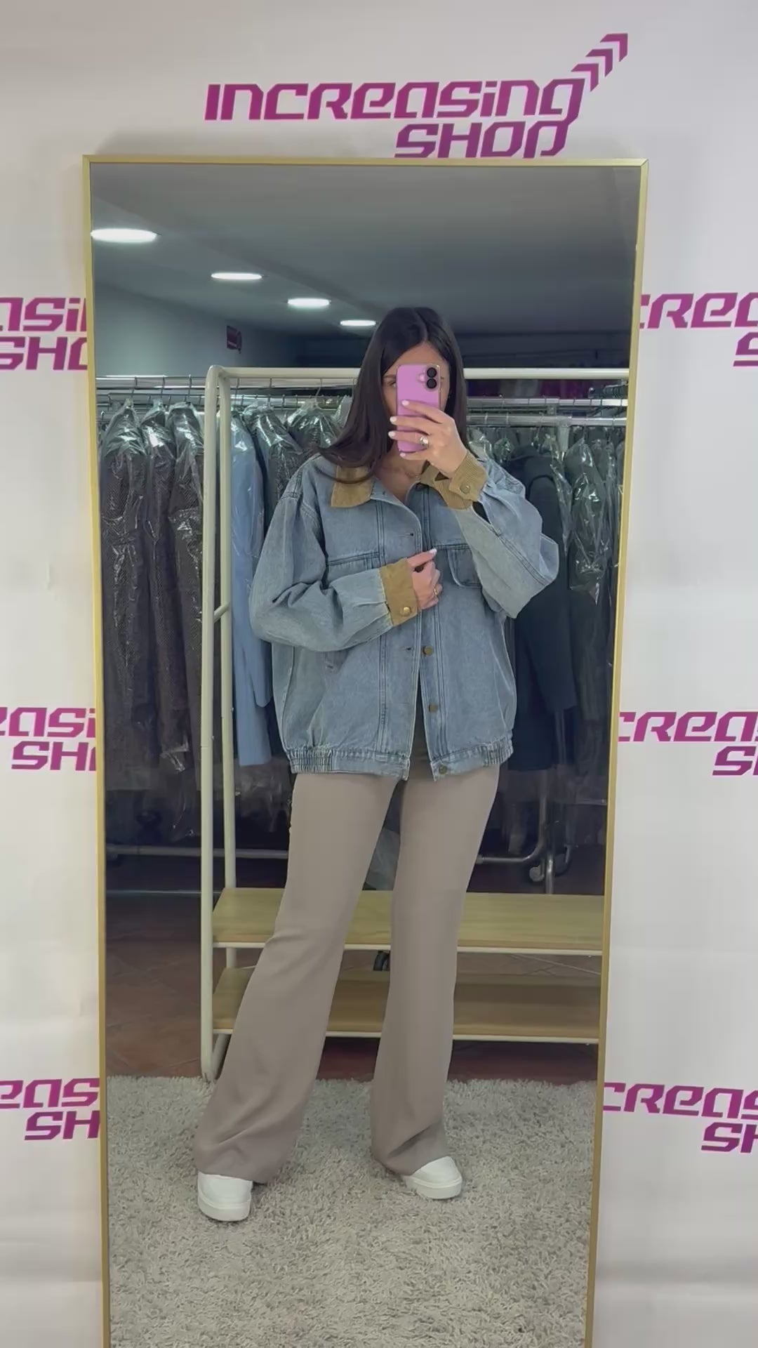 Rendi il tuo look audace e un po' eccentrico con il nostro giubbino di jeans over con dettagli in velluto. Aggiungi un tocco di stile in più con i polsini e il colletto in morbido velluto. Perfetto per un look casual e divertente!