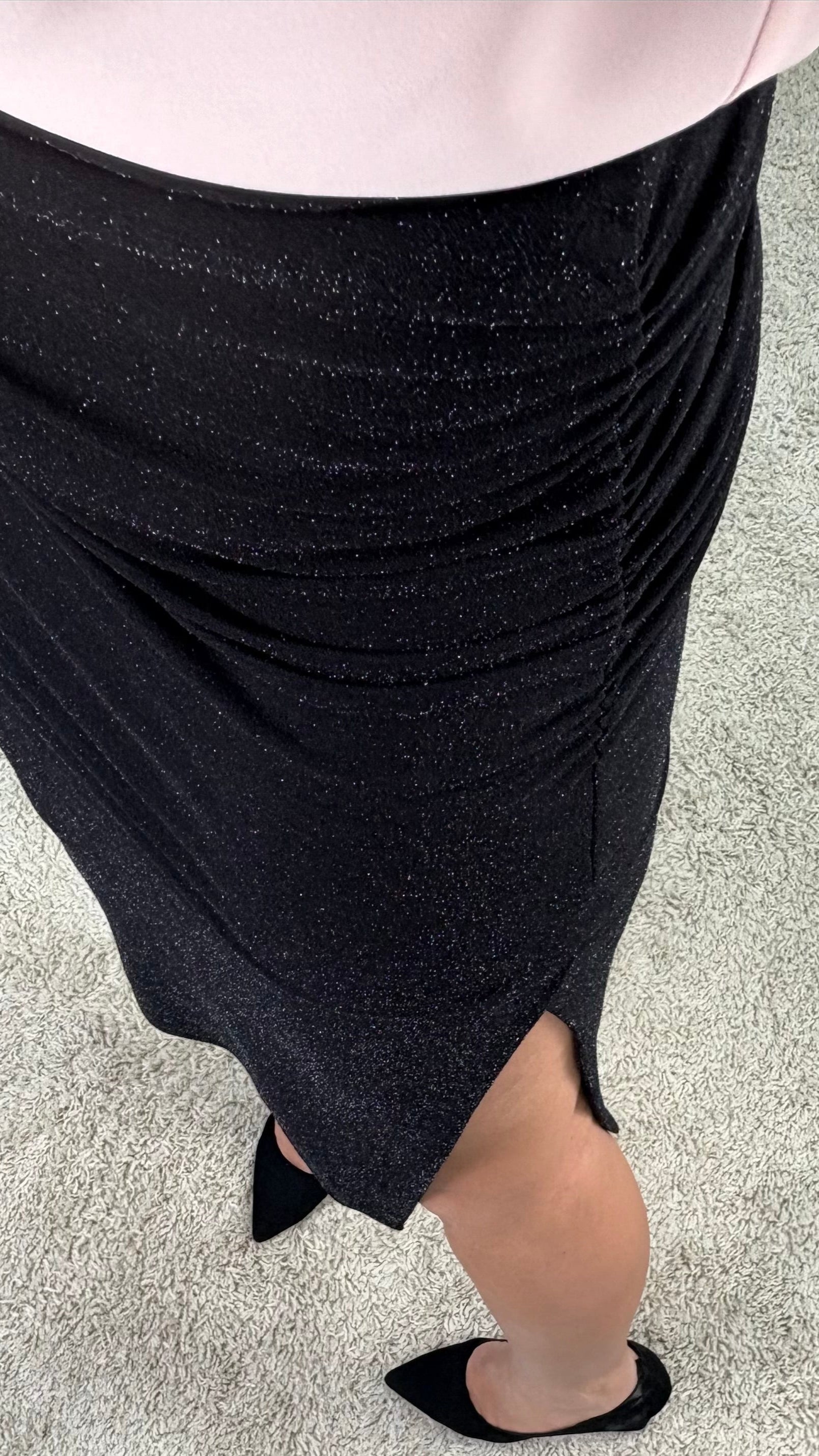 Questo abito elegante a tubino offre un look sofisticato e professionale. La parte inferiore laminata e con spacco garantisce libertà di movimento e aggiunge un tocco di eleganza. Perfetto per qualsiasi occasione formale.